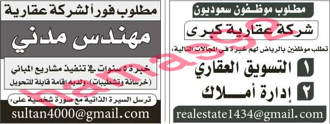 جريدة الوسيلة السعودية. وظائف في شركة بمدينة جدة. وظائف مدارس الحياة المضيئة العالمية بالعليا. مطلوب طبيبة عامة للعمل في الرياض. مطلوب حلاقي...