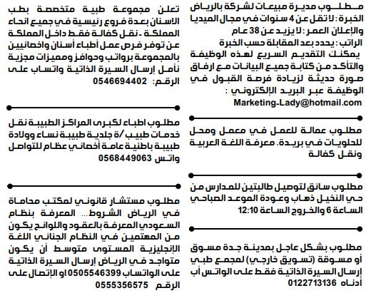 وظائف جريده الرياض السعوديه ٢٨/٩/٢٠٢١